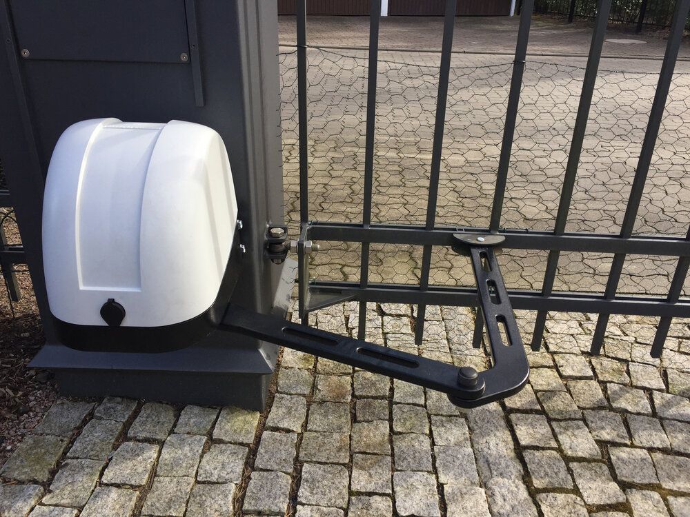 Durch die flexible Montage eignet sich das Set sowohl für links- als auch rechtsöffnende Tore und kann an Mauerpfeilern oder Metallpfosten installiert werden. Mit der robusten, wetterfesten Konstruktion ist der Drehtorantrieb auch für den dauerhaften Außenbetrieb bestens geeignet.